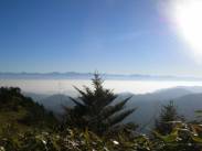 山頂広場には、一等三角点、山頂の標柱、神社、展望台がある。しかし、展望台に登っても360度の展望と言うわけではない。伊吹山や養老山地の方は見えるが、南アルプスや中央アルプス、御嶽山の方は樹林が邪魔をして見えない。
