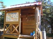 そして、キャンプが出来る場所はないかと下ってくると、園原ICの標識の前に何か公共施設のような良い場所があった。広い駐車場と隣にトイレもある。近づいてみると、「林業活動拠点施設」という看板がある。施設は施錠してあったが、トイレも使えそうである。