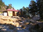 小休止の後、ここを出発(9:23)してさらに先へ進み、「バイオトイレ」と「避難小屋」がある広場(9:30)に出た。ここでは多くの登山者が休憩していたので、我々も早速食事タイムとした。私の定番の「おにぎり」と「もつ鍋」、「海藻スープ」である。食事中にはどんどん登山者が登ってきた。この時期でも登山者はいるのだなと感心する。登山道には雪があったのに・・・。食事休憩の後は、避難小屋の裏にある展望岩に登ってみた。すると、なんと、南アルプスの後に真っ白な富士山が見えるではないか!!これは、感動ものだ。