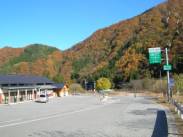 あとは、登りでは暗かったので分からなかったが、きれいな山肌の紅葉を見ながら林道を下って、駐車場(12:48)へ着いたのであった。