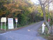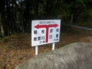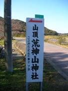 そして、荒神山直下の三差路に着く。ここは、パラグライダーの離陸場になっており、駐車場の広場とトイレがある。ここで右折すると、林道荒神山線を下って稲村神社の方へ下りていく。これを左折して登って行き、荒神山神社の駐車広場に出る。