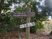 12時45分には「ウオークラリーコース 日夏山林道へ550m、荒神山山頂70m」という看板を通過する。さらに下って行くと、12時49分に「三角点300m」の看板のある分岐に出た。