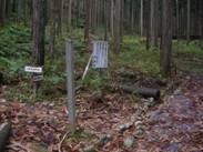 さて、登山道はこの「花はす温泉」の裏手から始まっている。「花はす温泉」の建物の左後ろにも右後ろにも登山道の道標がある。我々は、右手から入山し、左手へ下山してきた。