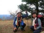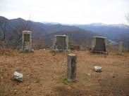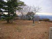 そして、14時20分に山頂広場に飛び出した。本丸台跡である。中央に三角点と方位盤がある。360度の展望があるが、特に日野山の展望が美しい。