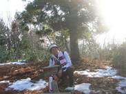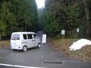この大仏林道の入口が分かれば、あとはその大仏林道を登って行けばいいのだ。今日は工事中のため通行止めの看板があったが、そのまま林道へ入って行く。この大仏林道は長いのであるが、吉野ヶ岳の登山口は入口から近いところにある。幸いにして積雪はなく、林道を登って行くと、「蔵王権現登山口」の看板があり、その手前に駐車広場もある。