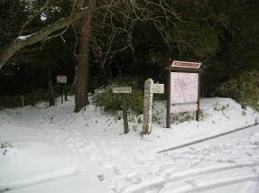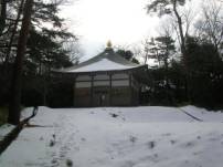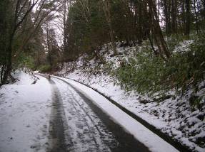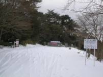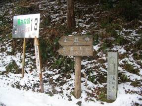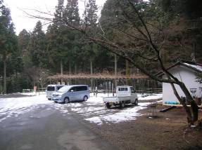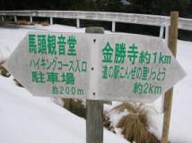 あとは、林道を案内に従って登って行くと、金勝寺の駐車場に着く。林道は積雪があり、注意して慎重に通行する。