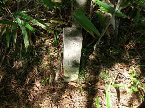 12時11分に「四合目」のコンクリート杭がると、すぐ先で尾根に出た。ここからは、尾根を登っていくことになる。12時20分には吊尾根を渡る。12時25分には「五合目」のコンクリート杭があった。そして、12時31分にも吊尾根を渡る。12時38分に「六合目」の杭を通過した。そして、12時41分には、尾根道から左山のトラバース道へと変わる。どうも右手に見える尾根に移るようだ。12時45分にその主尾根に出た。まだまだ支尾根と思っていたが、これが道坂峠から御正体山への主尾根であった。