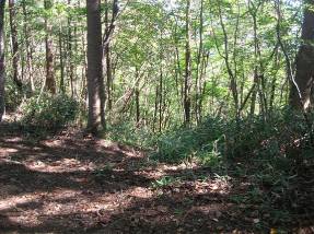 ここにはネットで調べた「御正体山」への案内看板があった。林道が荒れていなければここまで車で入れるわけで、そうであれば迷うこともなかったのである。ここから涸れ沢を渡って、左の方へ登っていく。すぐに沢に出て、沢沿いを登っていく。どうも2つの沢があって、その2つの沢の間を登っていくようだ。11時59分に2つの沢の間の尾根に上がった。しかし、すぐに右の沢の右岸沿いに登っていくようになる。さらに12時08分にはUターンするように左へ曲がって、いよいよ沢から離れ、尾根へ取り付くように右山でnトラバース気味に登っていく。
