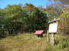 さて、期待した展望はなく、残念であった。相当広い山頂は広場になっており、「←山伏峠バス停 2時間40分、(御正体山山頂) 御正橋バス停 2時間→」という道標がある。また、三角点があるが、でかいので1等三角点であろう。
