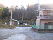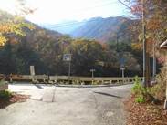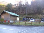ここで、左折して、橋を渡ると、正面に「三嶺登山口、名頃駐車場」が見える。休憩舎と水洗トイレもある立派な駐車場である。