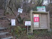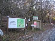 登山口には明日は「シカ捕獲作業」があるという紙が掲示してあった。また、旧登山道は、崩壊が激しいので、新登山道を利用するようにという看板もある。さらに林道は一般車通行止めとなっていた。