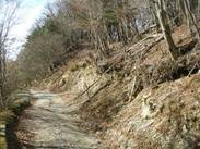 するとちょうど猟友会のマイクロバスが上がってきた。ここには駐車広場があるので、今日は「ここまでなら車で上がって来れたのに」と思った。マイクロバスをやり過ごし、6時48分に林道の右側から階段を上がって尾根に出た。ここからは、尾根を忠実に登っていく。