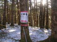 もう三嶺山頂は近い。道標には「下山道(名頃、ヒュッテ、三嶺頂上へ300m」と表示してある。