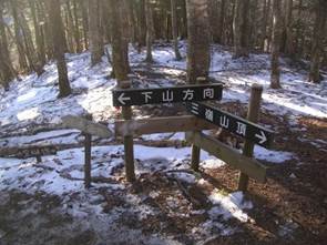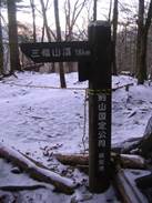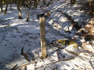 ここには、「←三嶺山頂 下山方向→」という道標がある。ここで、90度右へ曲がって尾根を登っていくとこになる。