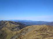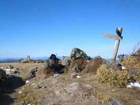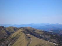 天気は快晴で360度の素晴らしい展望である。記念写真を撮ったり、展望を楽しみながらおにぎりを食べていると、自衛隊が上がってきた。狭い山頂はすぐにいっぱいになる。自衛隊の隊長は、気を利かしてかまだ全員が到着していないが、先発隊はシカ捕獲作業の現場へ下るという。その現場で(シカ捕獲作戦の)隊を編成するといって下っていった。
