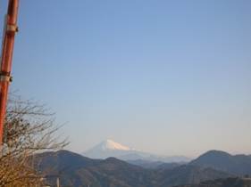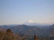 三角点はないので、ここで記念写真を撮って、売店「無間の鐘」のあるほうへ下りてきた。この前の駐車場からきれいな富士山が見えた。絶好のロケーションである。