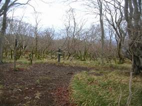 ここにも同じように木に巻いた黄色のビニールテープにマジックで「P762」と書いてある。この先、12時00分には振り返ると三重嶽山頂が見える場所を通過した。「P698」地点だろうか。ここから下ると、もう三重嶽は見えなくなってしまうのだ。12時14分には尾根から左下の船底へ下りる。そして、12時18分には尾根から右へ下りて、左山のトラバース道へ入る。12時24分に炭焼き跡を通過すると、再び尾根に乗る。尾根を急降下して、12時29分には尾根から右へ下ってジグザグ道へと入る。12時32分に駐車場所に下り立った。無事に下山できて良かった。