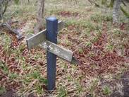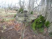 この付近もテント泊に適地となっている。ここまでくれば、大日尾根分岐は遠くはないはずだが、相当疲れてきた。10時02分にその大日尾根の分岐に着いたときは、へとへとになっていた。「三重嶽 3.6km」、「大御影山 2.5km」という道標がある。以前に来たときは、気づかなかったが、「電波塔跡 3.5km」という札もあった。