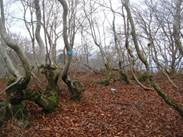 早速登山準備をして、7時14分に出発した。最初は急登であるが、ジグザグに登山道が付けてあるので、登り易い。7時20分には尾根に出た。後は尾根芯を外さないように登って行けばよいのだ。右から尾根が合流する「592m峰」までは急登であるが、「592m峰」からは傾斜が緩んでくる。7時35分には炭焼き跡と思われるよう場場所に出る。ここからは、尾根を直登せず、右山でトラバース気味に登っていく。そして、7時45分に再び尾根に上がる。尾根に出ると、そこは平らな場所で船窪地形のようになっている。船窪地形の船底を歩く感じだ。そして、7時50分に左手の尾根へと上がった。なおも、緩やかな登りであり、ブナ林が気持ち良い。やがて、8時05分には左手前方に三重嶽のピークが見えてくる。