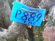この付近はテント泊に適している場所がある。ここからは先は緩く下って登り返すが、この登りがつらかった。ゼーゼーフーフーと登り返し、9時49分に「P889」の札があるピークに出た。