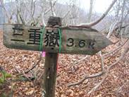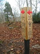 道標には「本谷橋 1.7km」、「落合 4.3km」となっている。落合からは距離が長い分、傾斜が緩やかなのである。そして、すぐ目の前に三重嶽の山頂標柱が見えている。1週間前に来た見覚えのある山頂だ。8時57分に三重嶽山頂(974.1m)に着いた。高島トレイルの「ポイント10」である。とは言っても「高島トレイルを歩く」という今日の目的のスタートラインに立っただけのことだ。ここから大日尾根まで往復しなければならない。