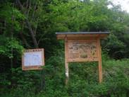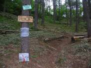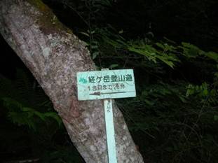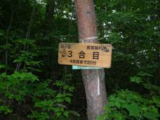 6時10分に「1合目」に着いた。林道がペアピンカーブで大きく左へ曲がっている場所である。「2合目まで15分」という看板がある。結局、1合目ごとにこうした看板があり、実にありがたい。