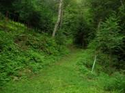 さて、6時19分には「←経ヶ岳登山道」という看板がある場所に着いた。ここでも林道が大きく左へヘアピンカーブしているが、登山道は直進するように看板があるのだ。それに従い、ここでは左へ曲がらず直進する。急坂の林道はすぐに終点となる。そこから右手の沢を渡っていよいよ登山道が始まる。