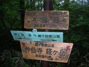 このトラバース道の始まるところに「←経ヶ岳登山道」の看板がある。6時59分にここを通過して、ほぼ平坦な道を進むと、7時00分に仲仙寺コースとの合流点に出た。