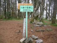 10時36分にようやく経ヶ岳山頂(2,296.3m)に着いた。9合目から20分のところを34分かかっている。地形図では経ヶ岳山頂は、2,296.4mとなっており、0.1m違っているが、細かいことはなしにしよう。評判どおり山頂からの展望はない。写真を撮っていると、8合目で休憩していた登山者が登ってきた。