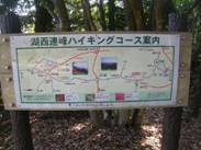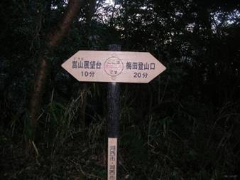 駐車場付近は工事中であった。それで、面倒なので梅田峠への登り口に駐車した。ちょうど1台分は駐車できる。登山口には道標や看板がたくさんあり、さすがに「湖西連峰ハイキングコース」というだけのことはある。7時24分に登山口を出発した。最初は車が通れるような広い道である。7時44分に梅田峠に着いた。